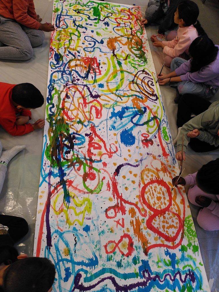 9 classes de maternelle CP ou CE des Îles de mars à Pont-de-Claix ont débuté une Traversée afin d’explorer la couleur, le geste et l’espace avec Frédérique Ryboloviecz. Une démarche de recherche collective dans l’écoute mutuelle et l’observation partagée.